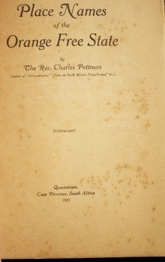 1.) Place Names of the Orange Free State by Rev. Charles Pettman
