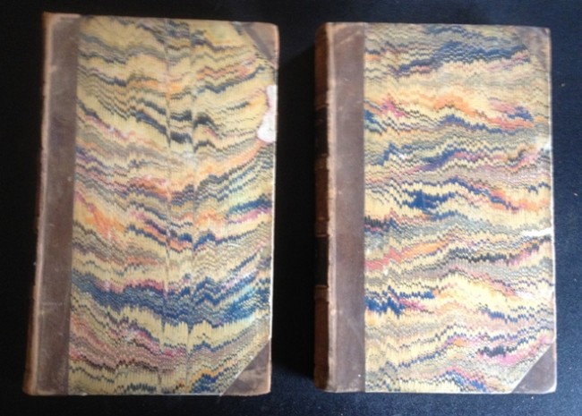 Octavo, 13cm x 22cm. Uniformly bound in half brown leather with marbled boards; 5 panels to spines, with volume number in gilt on black leather; decorative gilding on ridges.