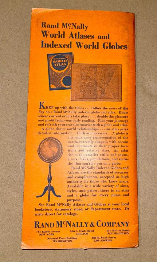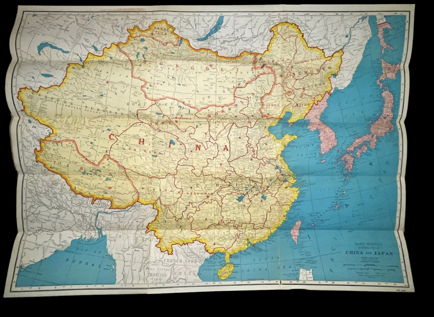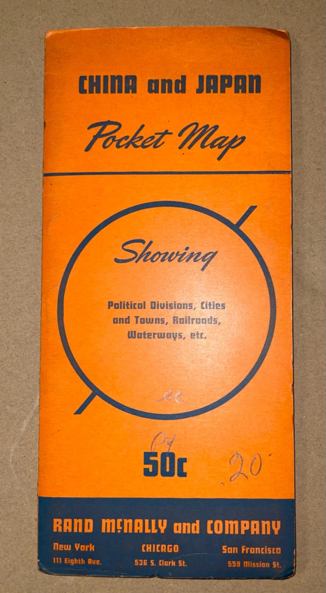 STANDARD MAP OF CHINA AND JAPAN . By Rand McNally. No date, c 1930. Printed stiff paper covers; light wear and stress to folds. Sharp, clean copy, folder has a few ink markings.