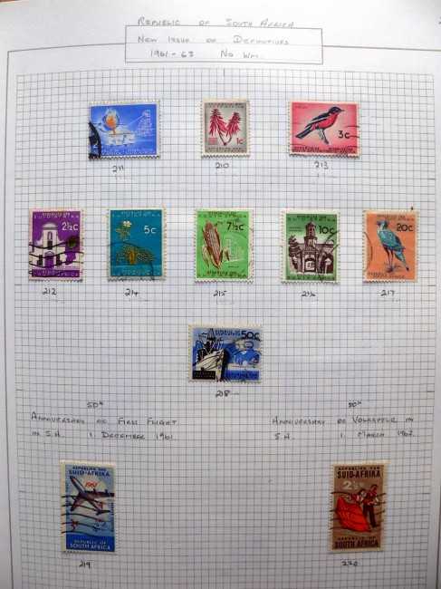 A neatly organized collection of post Union of South Africa stamps. Near complete, from May 1961, until February 1991. The collection has been meticulously organized in chronological order with accurate accompanying references and descriptions in pencil. The collection consists of a mixture of mounted mint and used stamps.