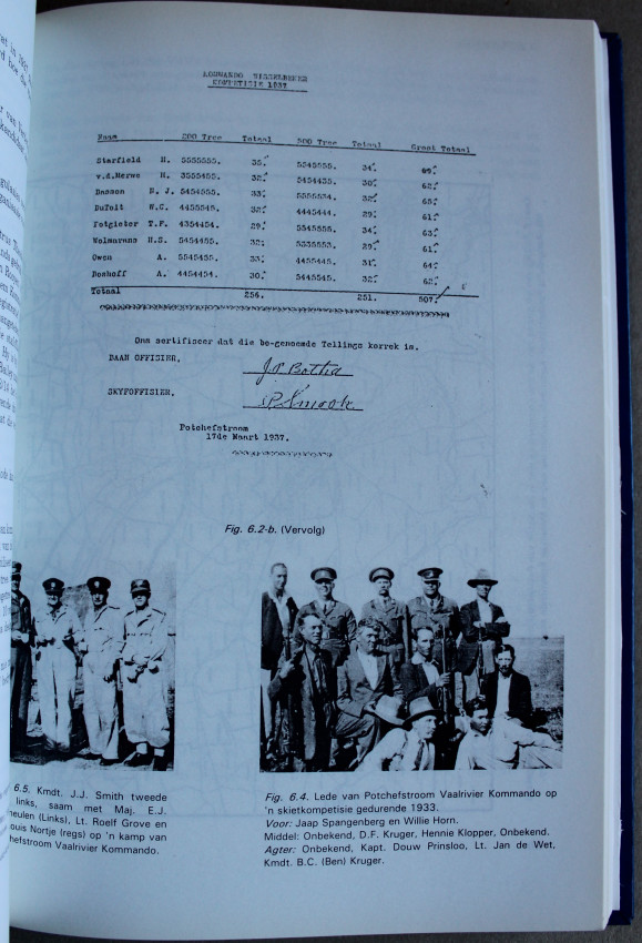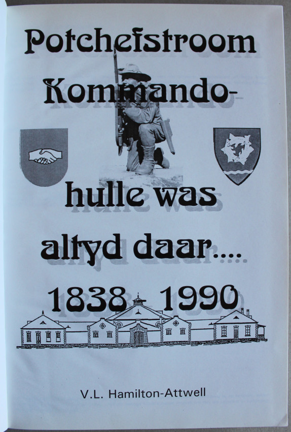 Gift inscription by author on ffep. Geskenk inskripsie deur skrywer op eerste teenbladsy en ook op 'n verdere bladsy. 'n Omvattende geskiedenis van die Potchefstroom Kommando. 181 bladsye. 'n Verdere 88 bladsye met addendums. Genommer 23 van 'n beperkte uitgawe van slegs 200.