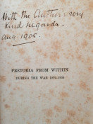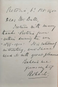- Dedication in ink "With the Author's very kind regards, Aug 1905"; this may be the first impression containing Roberts's congratulatory letter to the author