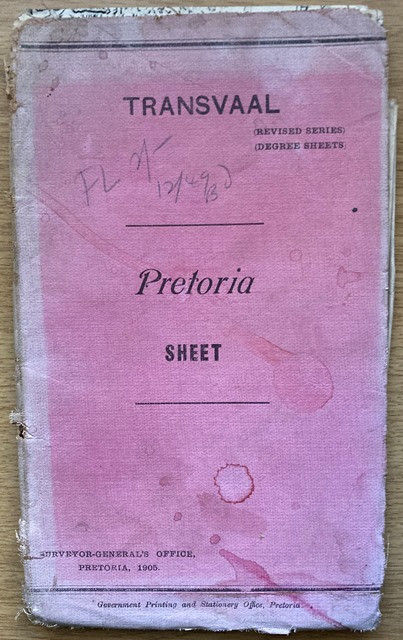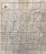 Folds into limp cloth binder, frayed with small tear and faded along edges. Small stains and pencil annotation on upper cover. Ownership stamp on map. "Revised 1 October 1903; revised temporary edition April 1905".