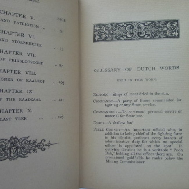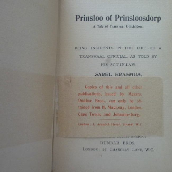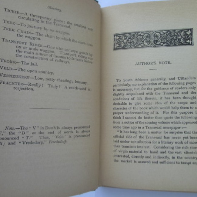 This is a well-preserved copy of one of the rare satirical books from the days of the Transvaal republic. The edition and year of publication are not indicated, but the production, from a London publisher, is attractive.