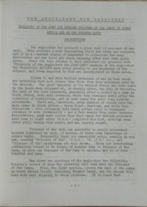 The Anglo-Boer War Philatelic Society Publication No 1. The Anglo-Boer War 1899-1902.