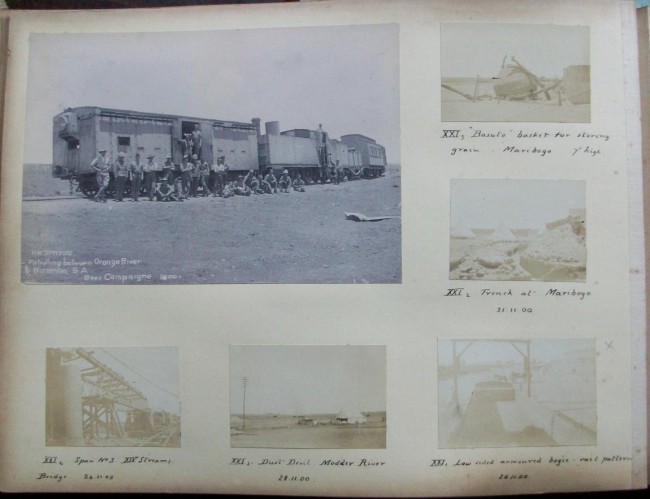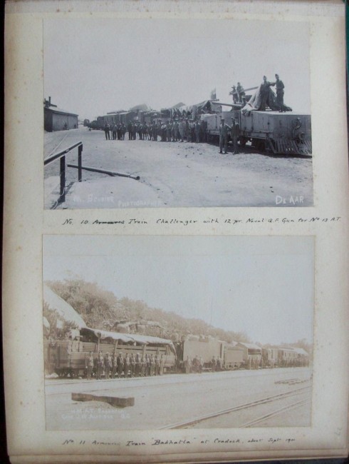 This private photographic collection, contains 268 authentic nostalgic images covering Railway and Military interest, during the Anglo-Boer War. Particularily of interest are the images of the railways, and the involvement of armoured trains and consequences during the Anglo-Boer War.