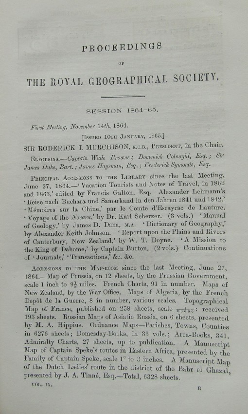 Proceedings of the Royal Geographical Society, Volume IX, 1865.