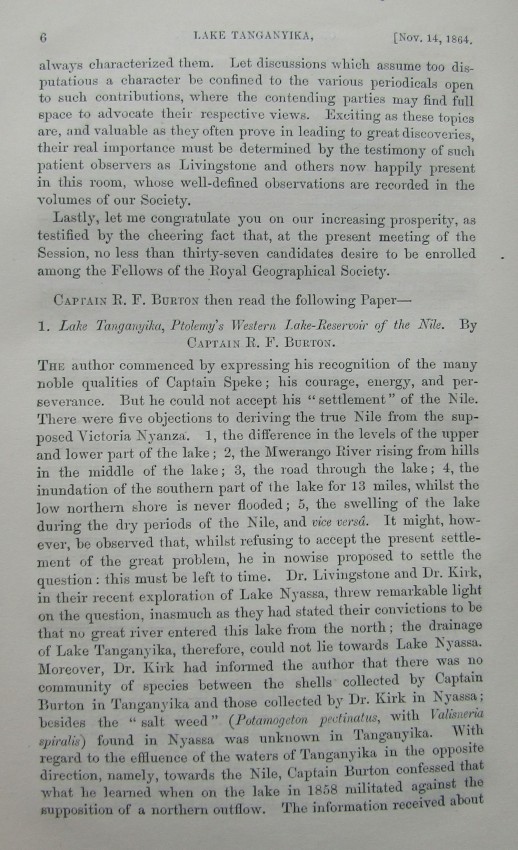 Papers: Burton - Lake Tanganyika.