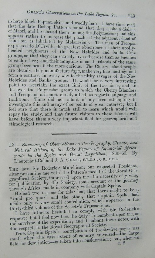 the Speke and Grant Expedition, 1860-63 (pages 243-342).