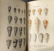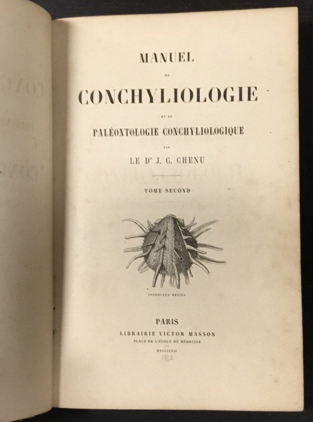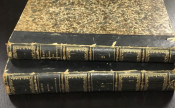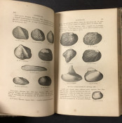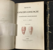 [PROFUSELY ILLUSTRATED] Manuel de Conchyliologie et de Paleontologie Conchylioliogique 2 vol. In marbled boards with leather spines, marbled end papers and all edges marbled. Scuffed, chipped but holding, 1a few pp sprung but not loose. Foxing on endpapers, text is generally very good. The color illustrations appear sporadically. Volume 2 was printed later, in 1862.