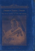 4 pages, cream card boards with a photograph of Queen Victoria in gilt on the upper cover and all text gilt, the same commemorative programme printed on blue silk with fringes, also 4 pages, with gilt illustration and text is housed inside these boards, held in place with a red cord.