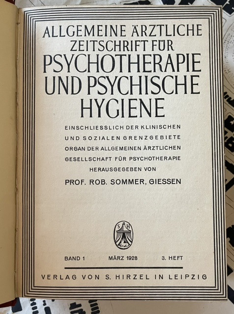 ALLGEMEINE ÄRZTLICHE ZEITSCHRIFT FUR PSYCHOTHERAPIE UND PSYCHISCHE HYGIENE … PROF. ROB. SOMMER, GIESSEN BAND 1 &2.