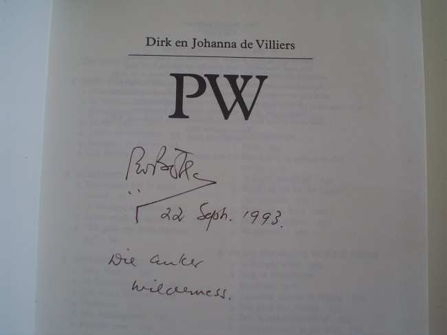Geteken deur Botha voorin op titelblad en gedateer 1993. Binne: drie hoofstukke oor die Suidwes-Afrika kwessie, SWA, Resolusie 435, Swapo, Rhodesia, Pik Botha, Magnus Malan, Donges, Ghaddafi, Koornhof, Kissinger, Mulder, Oppenheimer, Nujoma, Waldheim, Verwoerd.