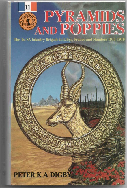 8vo; original pale grey boards; laminated pictorial dustwrapper; pictorial endpapers; pp. xiv + 444, incl. index; liberally illustrated with maps, photographs and contemporary artwork. Spine a little sunned; some spotting to top edge. Near fine condition. "Pyramids and Poppies is the very personal story of the 1st South African Brigade on the Western Front during World War I. On this 'front of all fronts', as it was called by the millions of men who lived and died in the mud of trench warfare, South Africans were present. Nearly four and a half thousand men of the South African Brigade were never to return from that front alone. John Buchan rated the 1st SA Brigade 'to have had no superior and not many equals'. Yet, since Buchan wrote The South African Forces in France in 1920, no book has been written that covers the whole spectrum of the 1st SA Brigade in World War I. That account has now been updated and expanded with a wealth of material. Delville Wood is here, so is Butte de Warlencourt, Arras, Ypres, Marrières Wood, Messines; the parched desert of Africa and the stinking mud of Flanders. Through it all bursts the bravery and compassion of men who offered themselves in innocence, and learned the cruel indifference of war waged by armchair generals."