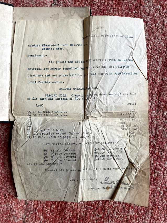RAILWAY APPARATUS AND SUPPLIES CATALOGUE AND PRICE LIST GENERAL ELECTRIC COMPANY SCHENECTADY, N. Y.SUPPLY DEPT.No. 75105 Oct. 1896, 12mo, cloth binding in very good condition