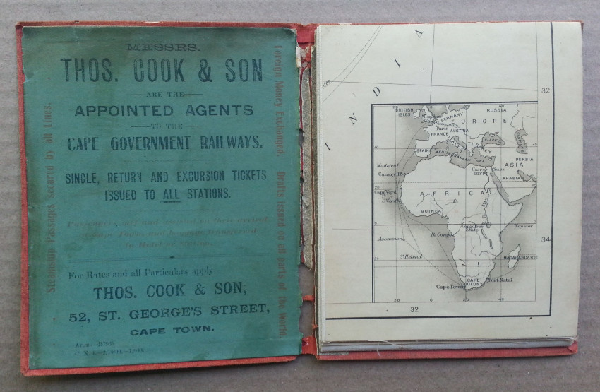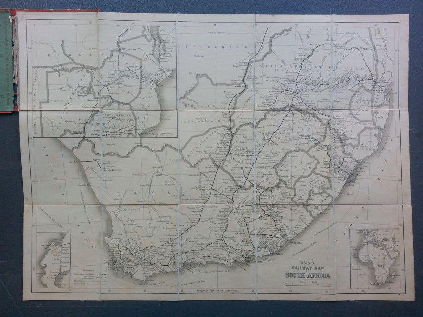 A scarce fold-out railway map of South Africa, published c. 1900. Map is 51 x 37,5cm when open. Please see photos for more details.