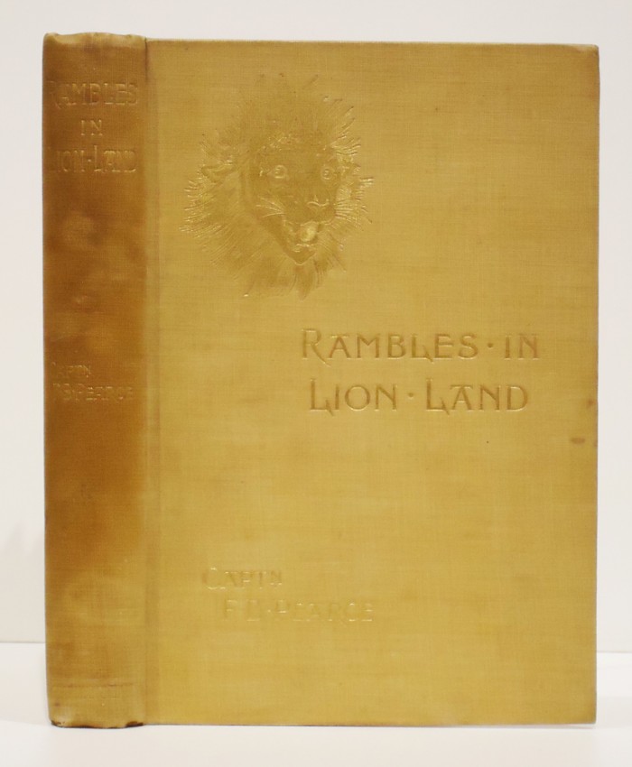 260 pages, frontispiece, 5 plates, folding map at the end, owners inscription on the front free endpaper, original brown cloth titled gilt and with a gilt vignette of the head of a lion on the upper cover and spine– which is now faded, the cloth is dull, fore-edge uncut, booksellers ticket on the back paste-down endpaper, light foxing,a good copy.