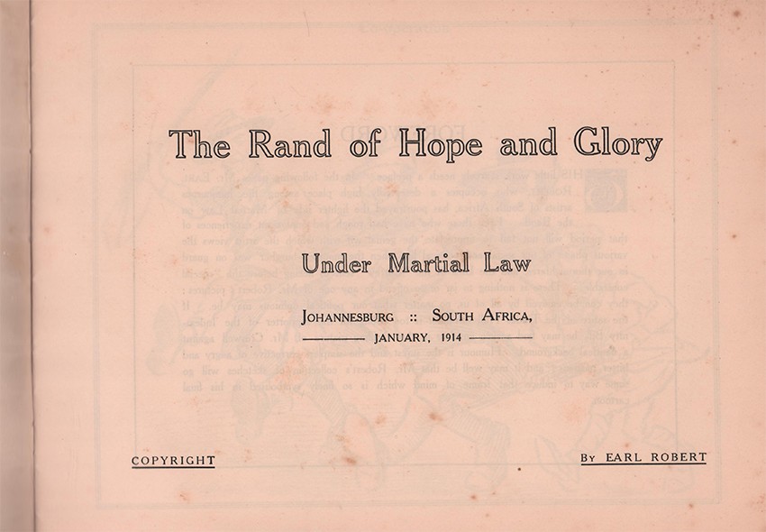 From the foreword: In the following pages Mr Earl Robert, who occupies a deservedly high place among the humorous artists of South Africa has portrayed the lighter side of Martial Law on the Rand.