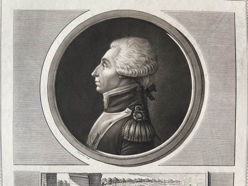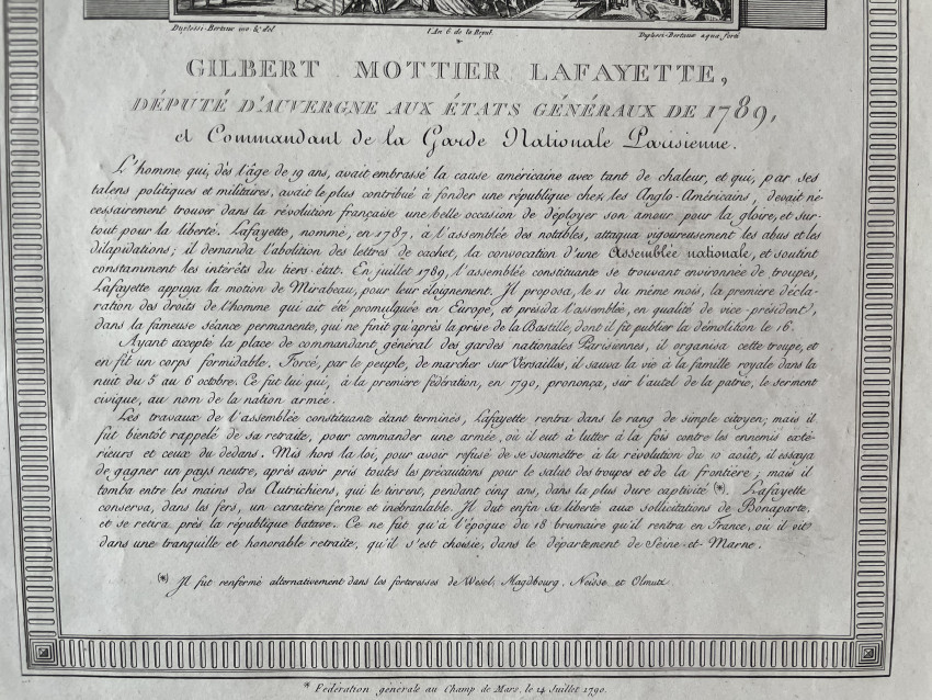 Levachez, père et fils, Portrait of Gilbert Mottier Lafayette, from Tableaux historiques de la Révolution Française - 1798–1804 . Gilbert Mottier Lafayette, Deputy State General of Auvergne, from Tableaux historiques de la Révolution Française - 1798–1804 - Charles François Gabriel Levachez, and Son (French, 18th and 19th century) Jean Duplessi-Bertaux (French, 1747-1819) - Artist: Levachez, père et fils, France, 1798–1804, Aquatint and etching, with engraving, in black on ivory wove paper, Dimensions: 363 × 224 mm (image); 434 × 281 mm (plate); 502 × 318 mm (sheet)