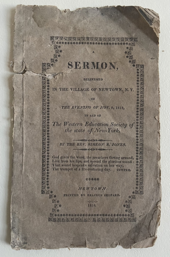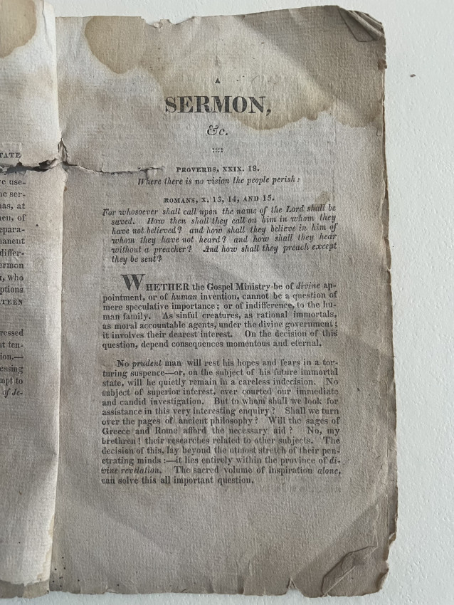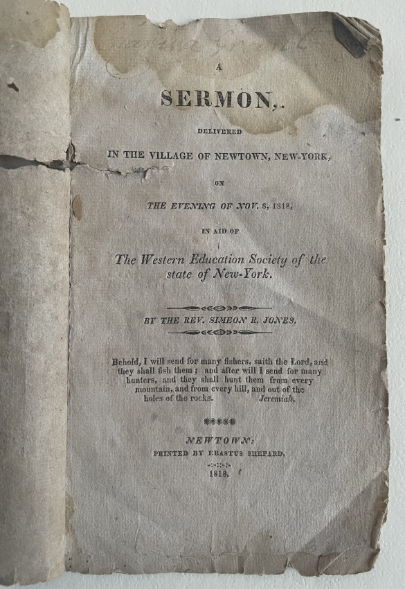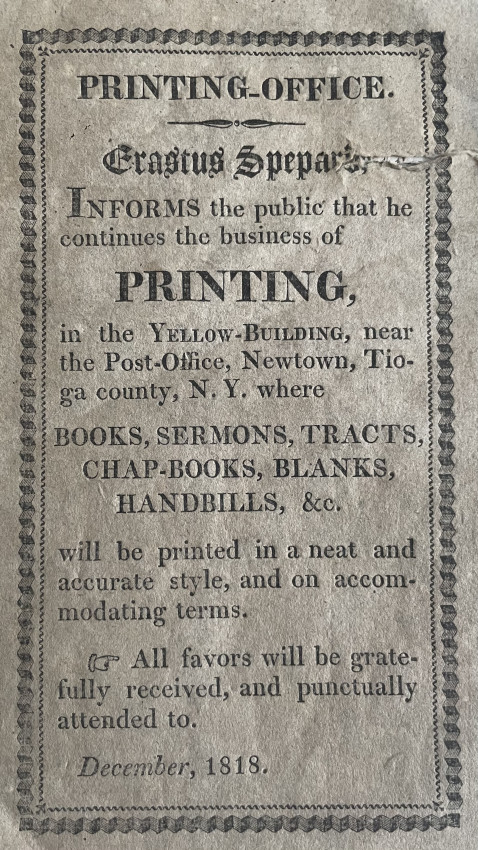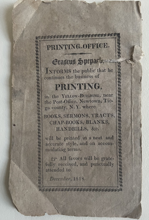 An early sample of printing by Shepard who evidently did not proofread carefully, spelling his name Spepar… instead of Shepar… using old English style type and confusing a p for an h.
