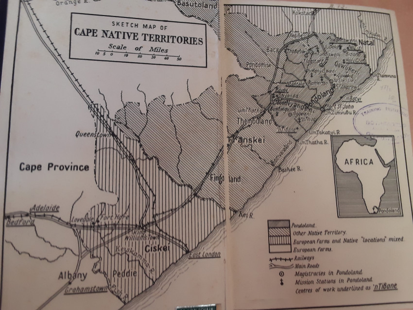 Blue cloth boards with gilt lettering on spine, 582 pages, end papers illustrated with map of Cape Native Territories. Stamp of previous owner on flep, else very good.