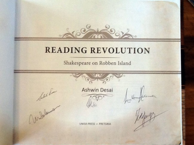 Signed by Ahmed Kathrada, Saths Cooper, Sedick Isaacs, Marcus Solomon, Monde Mkunqwana and the author Ashwin Desai.