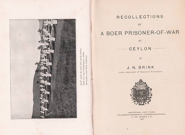 220 pages, numerous plates and illustrations, original green cloth gilt, photograph laid down on upper cover, coat of arms of the Transvaal Republic embossed in on back cover.