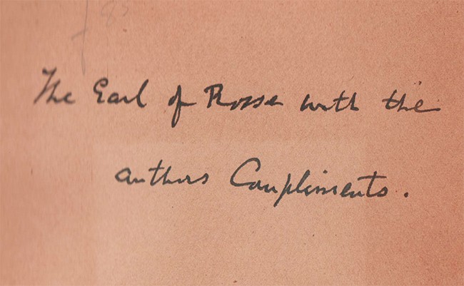 The presentation inscription reads, ‘The Earl of Ross with the author’s compliments.’