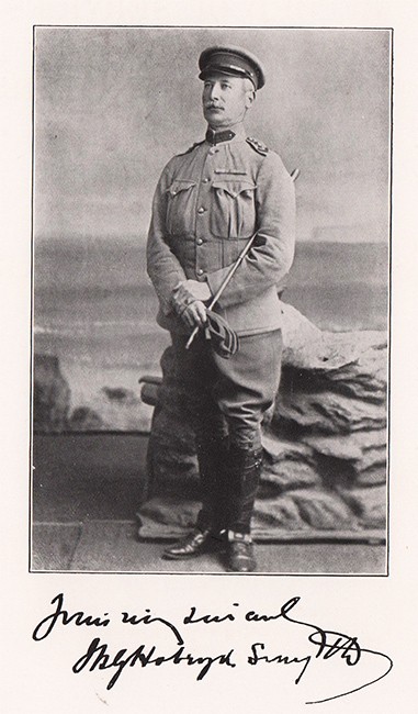 Author's presentation inscription to front free end paper.148 pages, maps, some folded, portraits, black and white photographs, green cloth, with lettering and regimental device in gilt to upper cover, book plate on the front free endpaper.