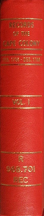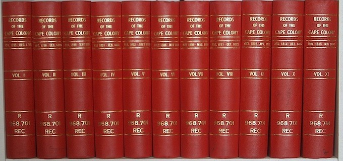 Records of The Cape Colony 1797-1827, 33 Volumes (Numbers 1 to 33), "copied for the Cape Government, from the Manuscript Documents in the Public Record Office, London by George, McCall Theal, Colonial Historiographer."