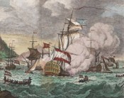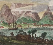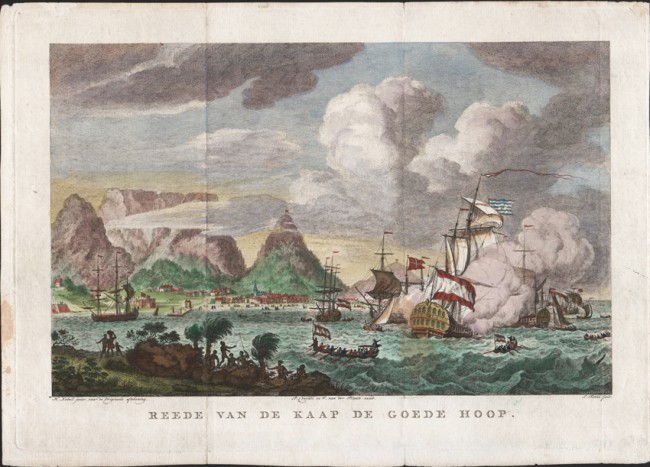 Copper engraved view Table Bay and Table Mountain. Three folds. Later colouring.