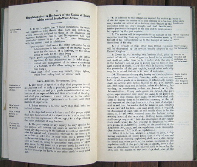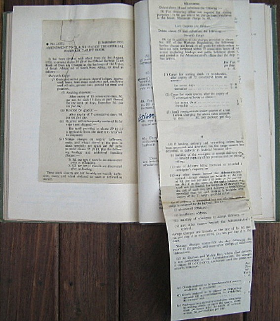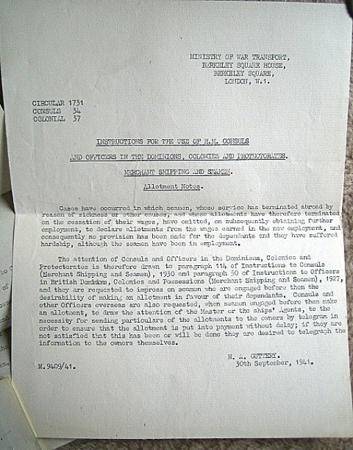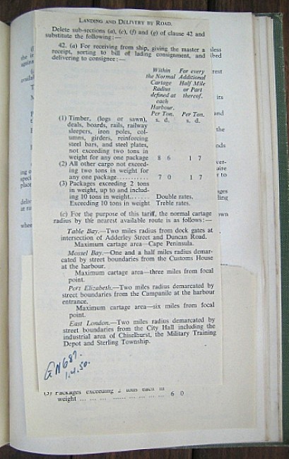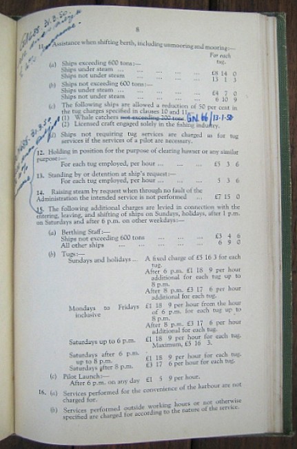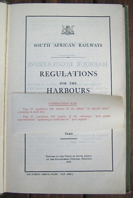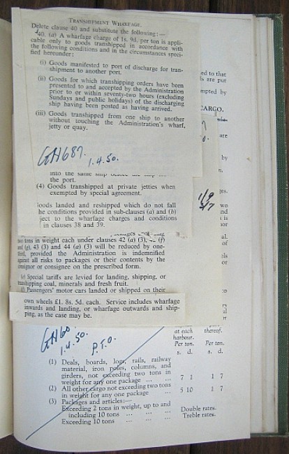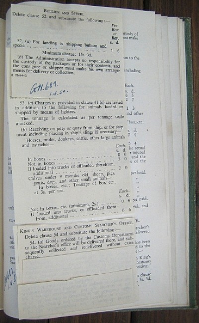 Unique in that this is the original personal copy of the Surveyor Docks. Includes Dept. of Customs and Excise rubber stamp, several penned foot-notes and numerous amendment paste-downs. Also included are numerous loose documents as well as letters from the Ministry of War Transport.