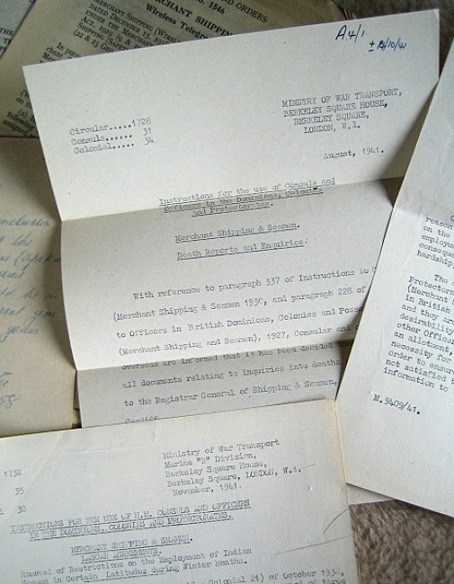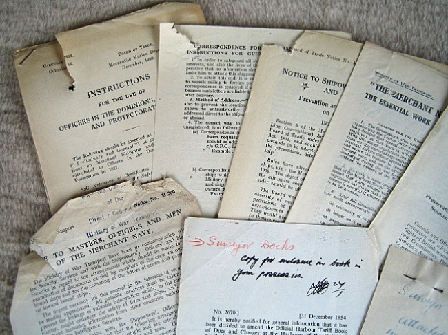 (Personal copy of the Surveyor Docks with numerous footnotes and letters from the Ministry of War Transport, rubber stamps, documents, etc.)