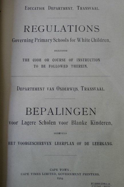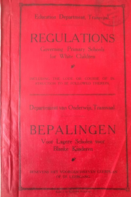 The manual is interesting for the course content of (white) primary schools prescribed exactly one hundred years ago. The requirements seem high compared with some later periods in the country's history. The range of courses (starting with preparatory courses for sub-standards) is also comprehensive. (See image)