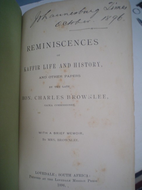 A sketch of the Honorable Charles Brownlee's life. The onerous duties of his official career prevented him from carrying out his intention to publish his accounts whilst engaged in active service. After his retirement, the state of his health made it impossible to carry out this intention. He had however written papers from time to time on subjects connected with his own special department, Native Affairs. His large knowledge of Native history and his great experience in dealing with Native affairs give a permanent value to some documents found in Blue books, which most persons will readily recognize.