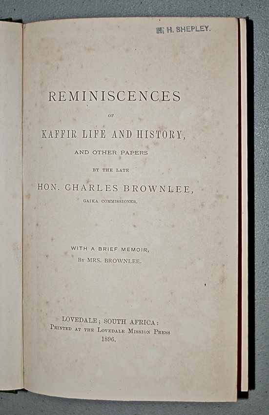 "Valuable records of Kaffraria; Sandilli, Pondos, Xesibes, and the Colonial Government. The Basuto War of 1880 and Natal and Zululand. An important addition to the literature in connection with the Eastern Province, Kingwilliamstown and the Kaffir Wars…. Mendelssohn devotes almost a full page to this important work" (from the Port Elizabeth sales catalogue).