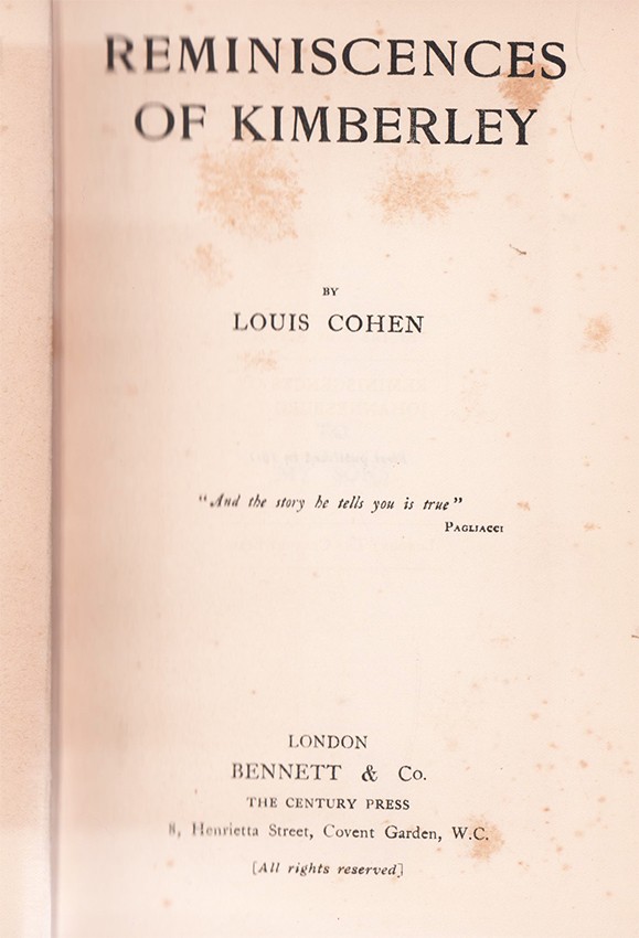 Mendelssohn (Sidney) South African Bibliography volume 1 page 351: 'The author remarks that he "will attempt to describe men and things" as he had known and seen them "for the last thirty-five years", and those who lived amongst the scenes he depicts can testify to the general accuracy of the vivid pictures he has drawn of the early days of the Diamond Fields. Many of the character sketches are written in an extremely caustic manner, and many of the African magnates are handled in a somewhat rougher manner than is generally accorded to these favourites of fortune'.
