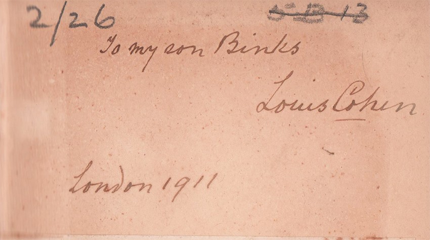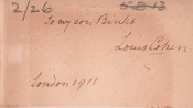 Presentation inscription on the front free end paper reads: ‘To my son Binks Louis Cohen London 1911.’