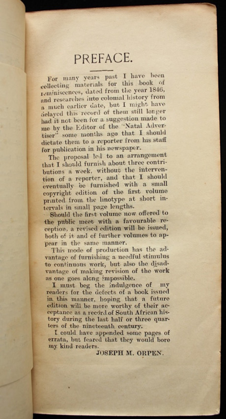The author was Member of several South African Parliaments and in various Official Positions was engaged in Public Affairs between 1853 and 1903.