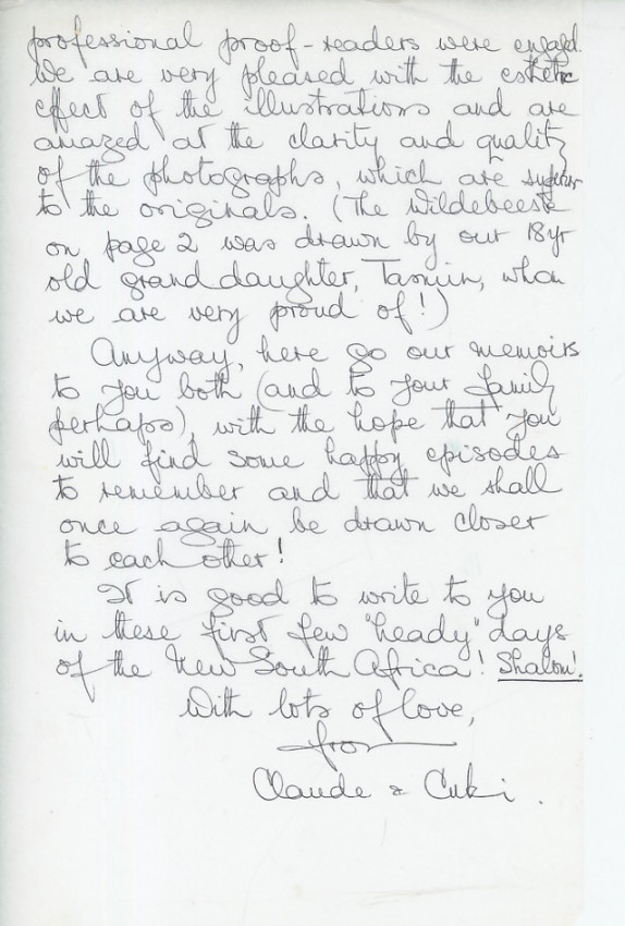 Claude & Cuki Kockott: Reminiscences of Our Life on Tambankulu and Umbuluzi Estates, 1st and only edition. Inscribed and signed on flyleaf + 2 handwritten letters 2 & 7 pages. Privately published, Hermanus, 1994. Folio, 8 1/4 x 11 1/2"; 210 × 296 mm. 3+183 pages, many coloured and b & w photographs.