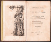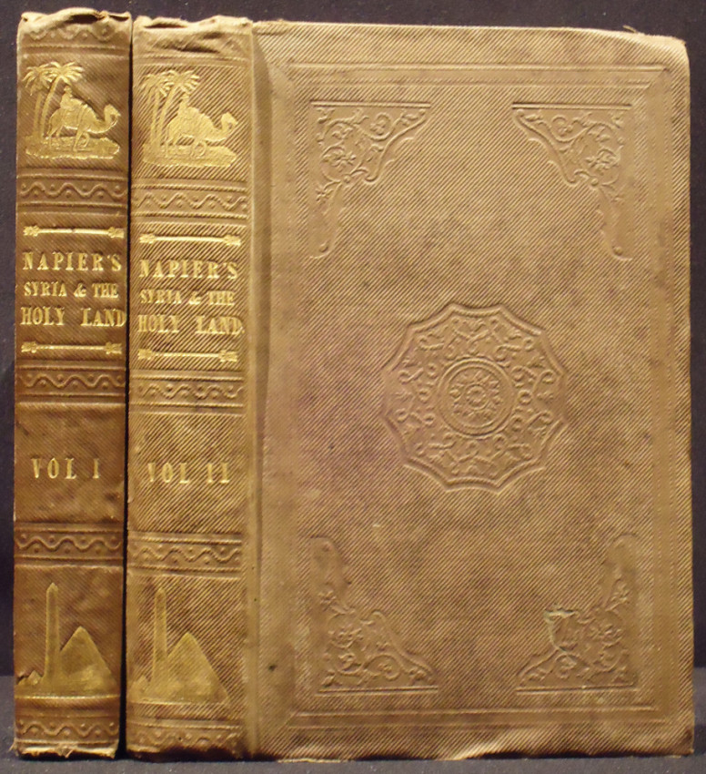 First edition: 2 volumes. 348 + 415 pages, lithograph frontispieces, folding map torn along the bottom fold in volume one, diagram in volume two, the blind stamped brown cloth boards are worn, decorated spines gilt with tops and bottoms slightly faded, front hinge weak in volume two with preliminary pages working loose but holding on to the netting, uncut edges, corners bumped.