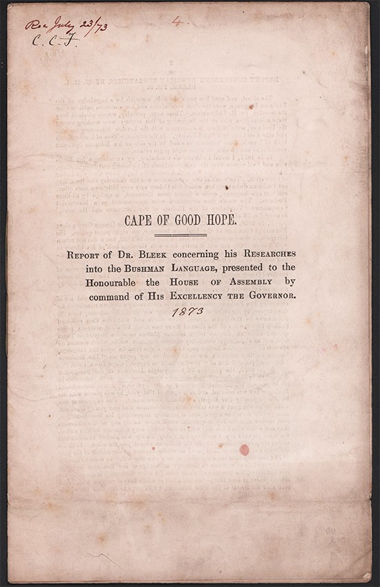 In 1870 Bleek and Lloyd, by now working together on the project to learn "Bushman" language and record personal narratives and folklore, became aware of the presence of a group of 28 ǀXam prisoners (San from the central interior of southern Africa) at the Breakwater Convict Station and received permission to relocate one prisoner to their home in Mowbray so as to learn his language. The prison chaplain, Revd Fisk, was in charge of the selection of this individual – a young man named |a!kunta. But because of his youth, |a!kunta was unfamiliar with much of his people's folklore and an older man named ||kabbo was then permitted to accompany him. ||kabbo became Bleek and Lloyd's first real teacher, a title by which he later regarded himself. Over time, members of ||kabbo's family and other families lived with Bleek and Lloyd in Mowbray, and were interviewed by them. Many of the |xam-speakers interviewed by Bleek and Lloyd were related to one another. Bleek and Lloyd learned and wrote down their language, first as lists of words and phrases and then as stories and narratives about their lives, history, folklore and remembered beliefs and customs. Bleek wrote a series of reports on the language and the literature and folklore of the |xam-speakers he interviewed, which he sent to the Cape Secretary for Native Affairs. This was first in an attempt to gain funding to continue with his studies and then also to make Her Majesty's Colonial Government aware of the need to preserve San folklore as an important part of the nation's heritage and traditions.https://en.wikipedia.org/wiki/Wilhelm_Bleek