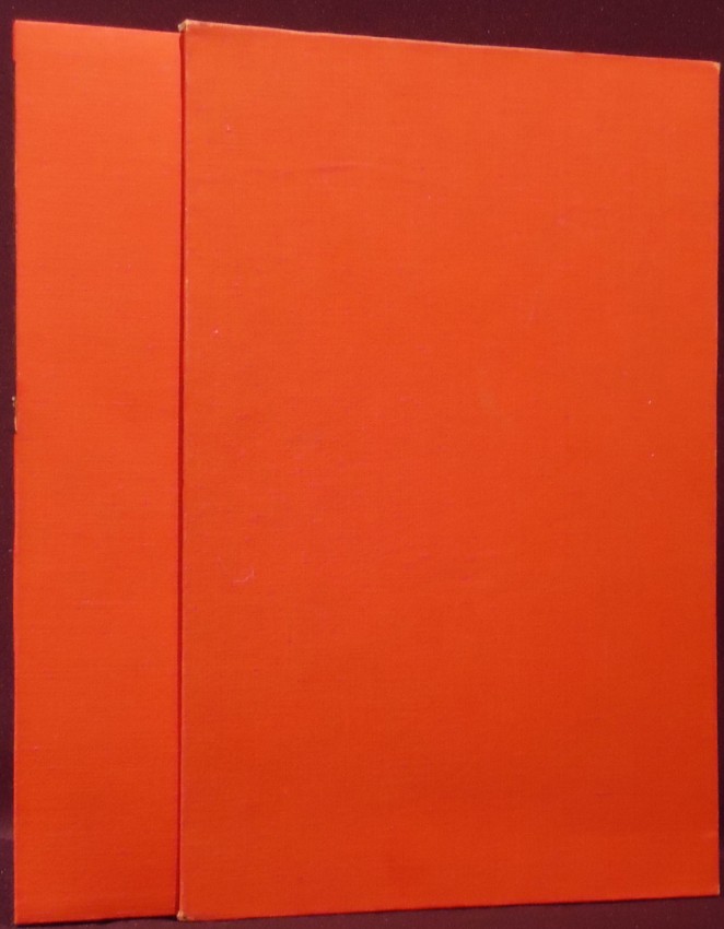 8 pages, bound with thread, housed in a specially made red cloth folder which fits into a similar red cloth covered slip case, titled gilt on a black label on the spine, a good copy.
