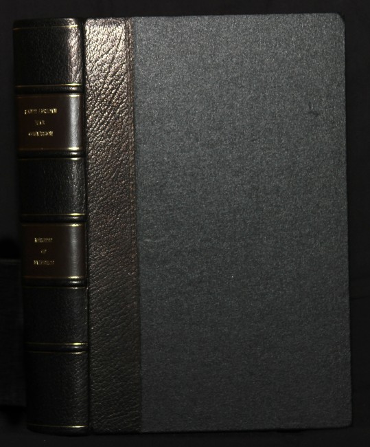 The four original "blue books" have been bound into matching quarter-bound black calf and black cloth volumes. These have green-and-white head-bands and five raised spine bands with gilt rules and gilt lettering on brown morocco panels. All page edges are red-speckled.