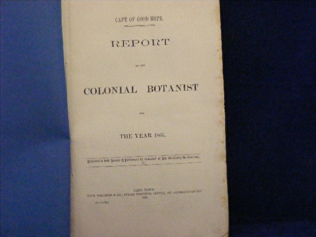A Cape Town Government series of Reports regarding the planting of trees etc. to prevent drifting sand; diseases affecting fruit and nut trees; the potato disese; rust on cereals etc.