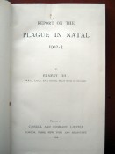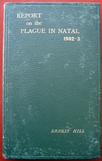 192p. Pocket at rear with fold-out plan of Durban showing place of work or residence of cases infeceted. Green cloth boards with gilt lettering on front and spine. Slight insect damage to covers. Contains chapters on the history of the plague, the manner in which it spread and measures for its limitation. Contains appendices with charts and tables. Paper clip marks to prelims where a note from Dept of Public health was clipped.