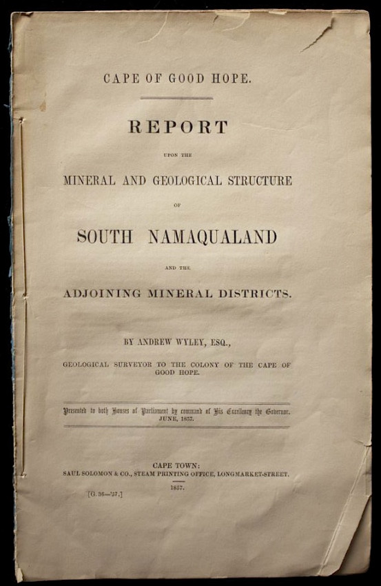 An extensive 55pp. report of the activities of several Copper Mining ventures in the Namaqualand District.
