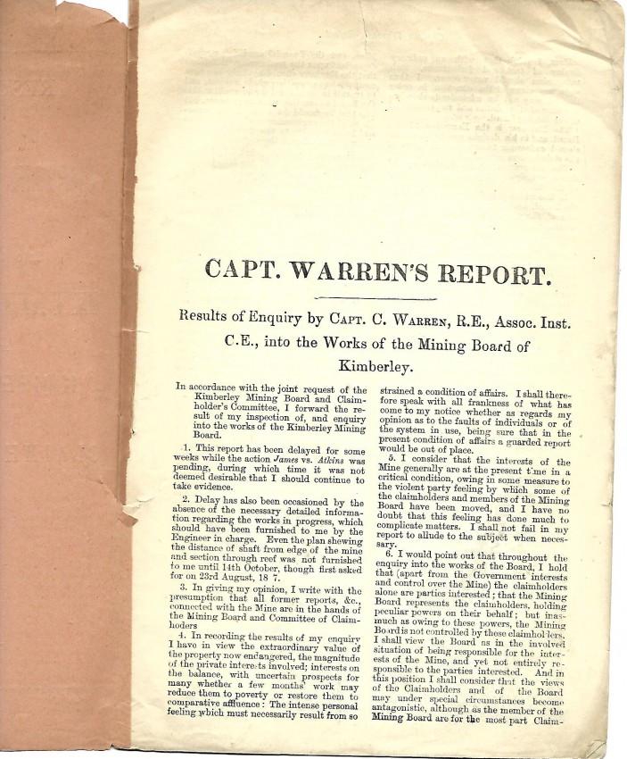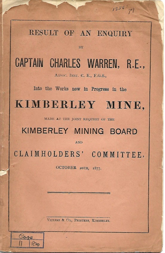Excedingly rare 11pp. pamphlet in the original buff wraps printed in black. SABIB Vol. 4, Page 726 refers only to the Mendelsohn listing and locates no other copies. A very early example of Kimberley printing.