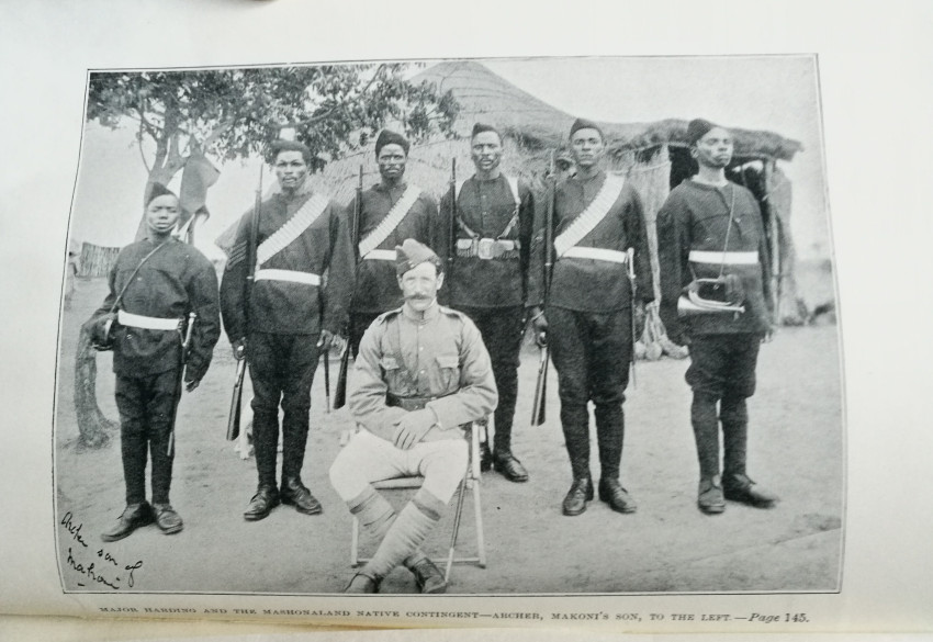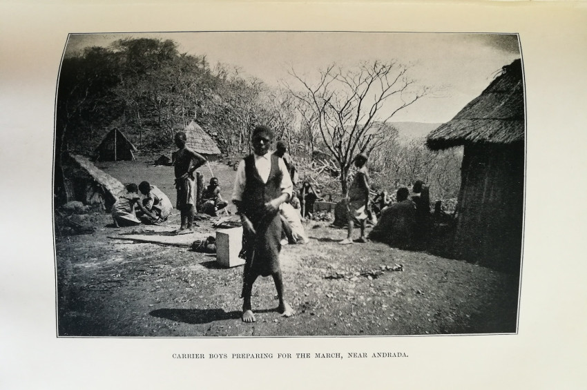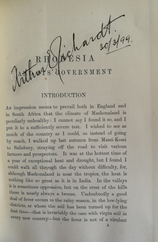 There is a vertical scoring line on the spine (see image), but the binding is otherwise undamaged and marked and remains square and firm; the endpapers are unmarked, as are the text, plates and map, the exception being Arthur Fichardt's bold ink signature and almost contemporary date (30/3/99) across the top of the first page of the introduction (see image)
