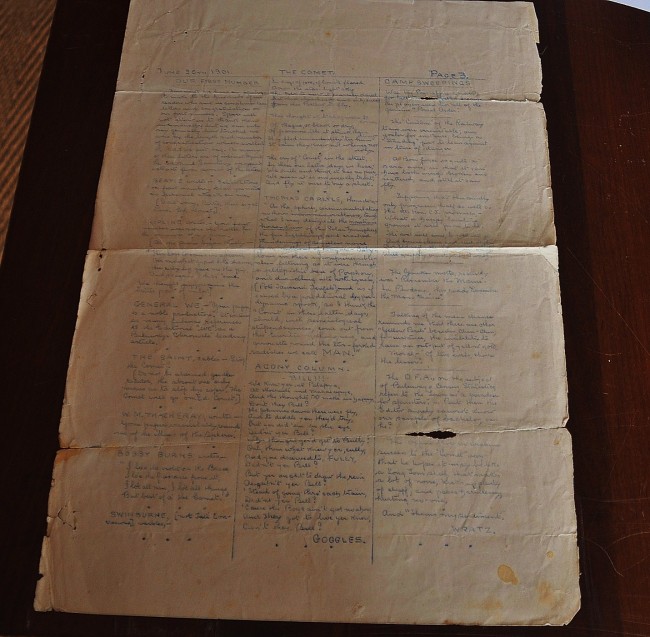 An issue of the Gubuluwayo Comet, Vol 1 no2, June 26 1901. Published at the Gubuluwayo Railway Camp.